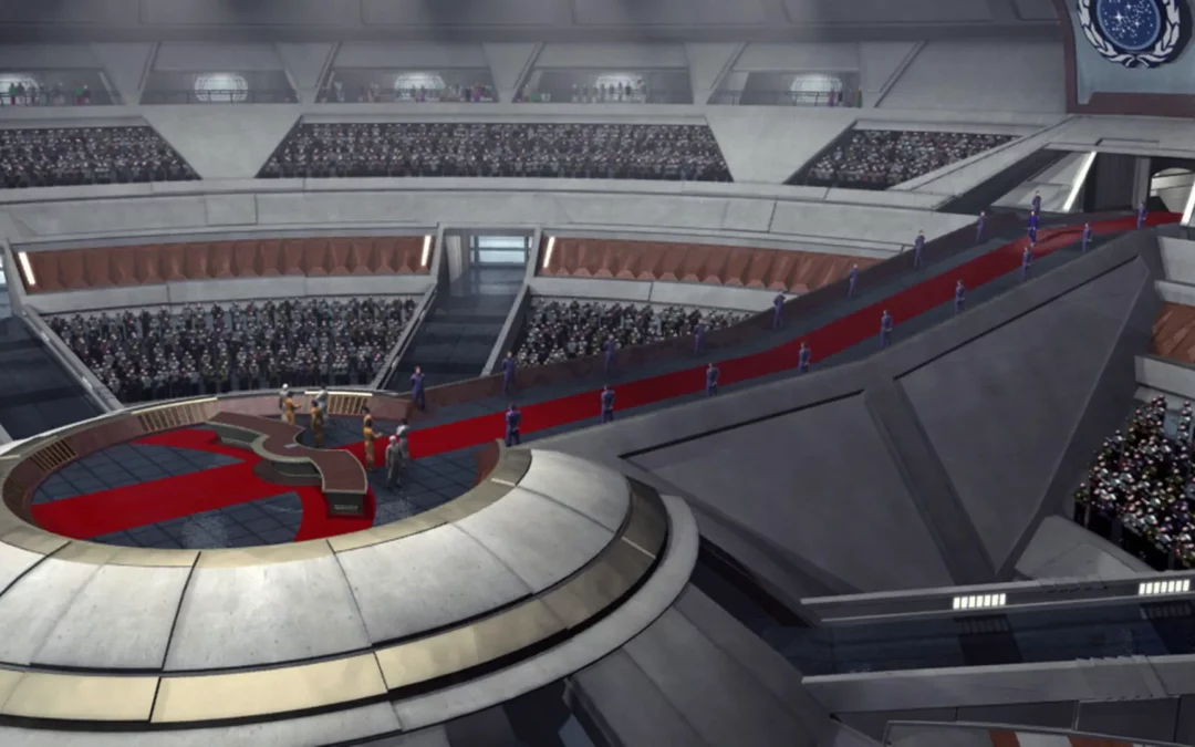 La Fête de la Fédération dans Star Trek trouve un écho fascinant dans la célébration française du 14 juillet 1790. L’une comme l’autre symbolisent une union politique fondée sur des idéaux de paix, d’égalité et de coopération.